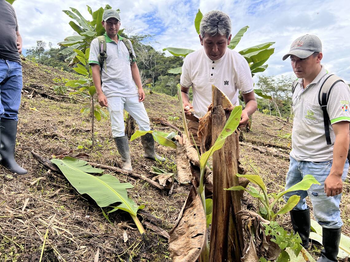 Mit den Pilotparzellen verfolgt das Projekt in Amazonas einen neuen Ansatz. Diese Flächen werden gemeinsam von Fortunato, Norandinos Technikerinnen und Technikern sowie den beteiligten Bauernfamilien bewirtschaftet. Dadurch können die Bäuerinnen und Bauern direkt sehen, welche Vorteile, aber auch welche Herausforderungen gut umgesetzte Agroforstsysteme mit sich bringen. Wer die Vorteile von dynamischem Agroforst selbst sieht, ist motivierter, den Ansatz auf den eigenen Parzellen zu übernehmen.