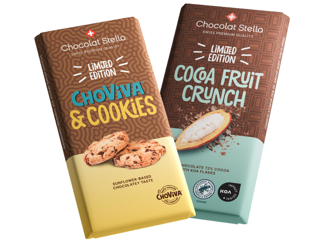 Stella präsentiert die New Quality & Diversity Linie mit zwei Limited Editions. «ChoViva & Cookies» – Ein Novum auf dem Schweizer Markt, eine kakaofreie Schokoladenalternative auf Basis von Sonnenblumenkernen. «Cocoa Fruit Crunch» – Dunkle Schokolade, veredelt mit Flocken der getrockneten Kakaofrucht.