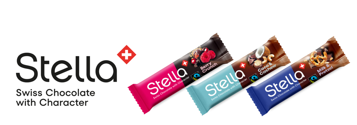Stella Bernrain sich neu auf: Mit dem Relaunch der Marke STELLA und dem Claim «Swiss Chocolate with Character» liegt der Fokus auf Innovation, Qualität und Nachhaltigkeit. Begleitet wird der Launch von drei neuen Snack-Riegeln, allesamt Bio und Fairtrade zertifiziert und mit nachhaltigem Papier verpackt.